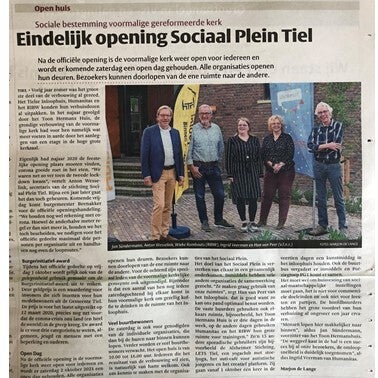 I.v.m. de coronamaatregelen in de afgelopen 12 maanden kan burgemeester Hans Beenhakker eerst op vrijdag 1 oktober de openingshandeling van Sociaal Plein Tiel (Dr. Schaepmanstraat 23) verrichten.