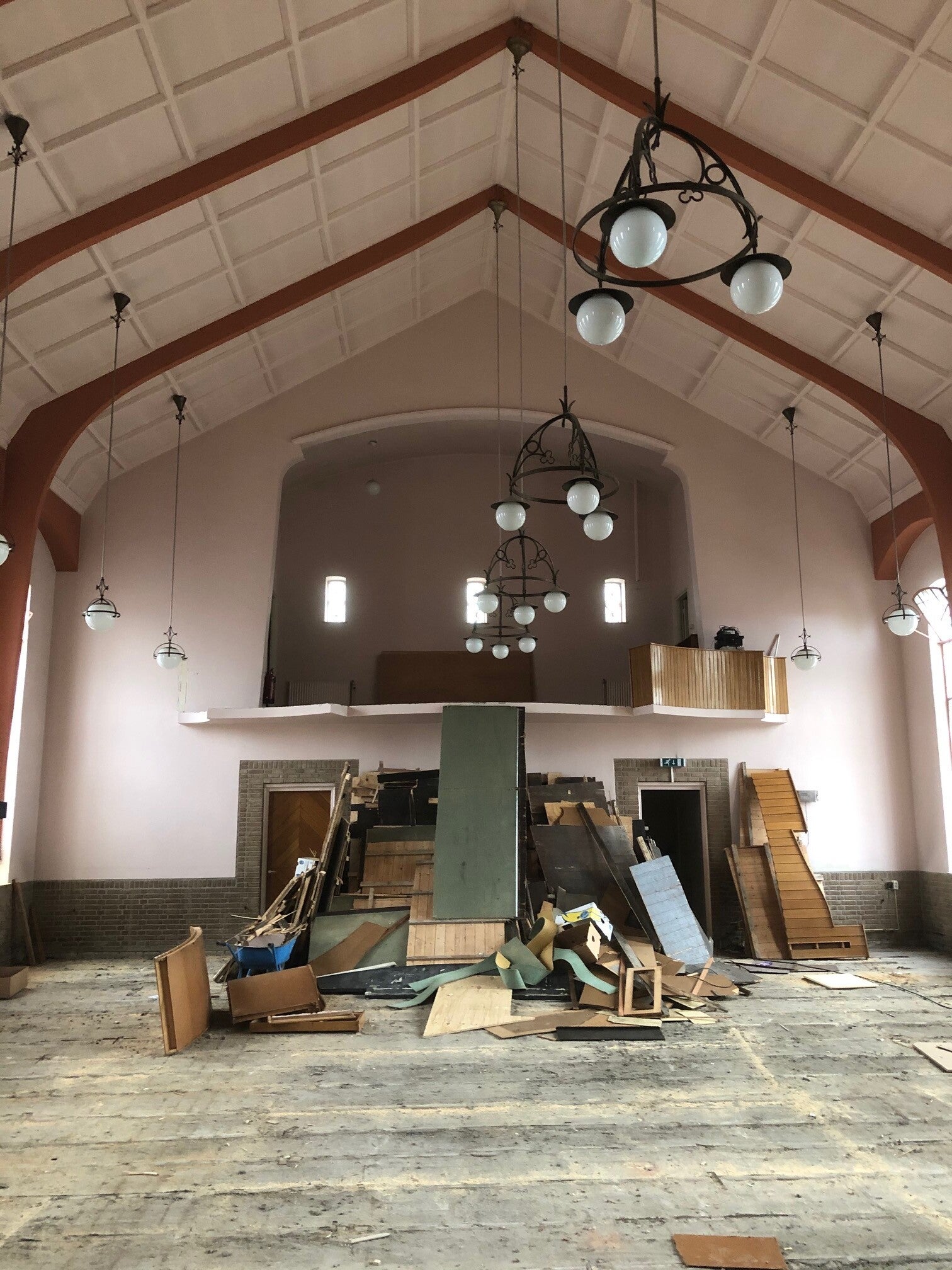 ook de voormalige kerkzaal wordt opgeleverd aan haar huurder